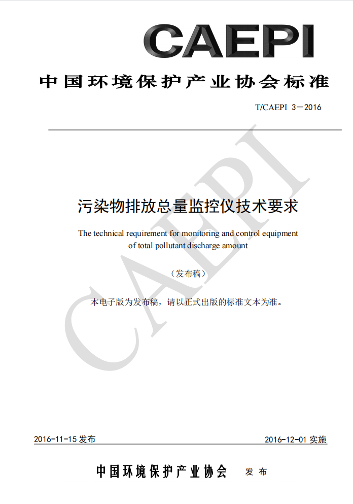 污染物排放總量監(jiān)控儀技術(shù)要求(T/CAEPI 3-2016)
